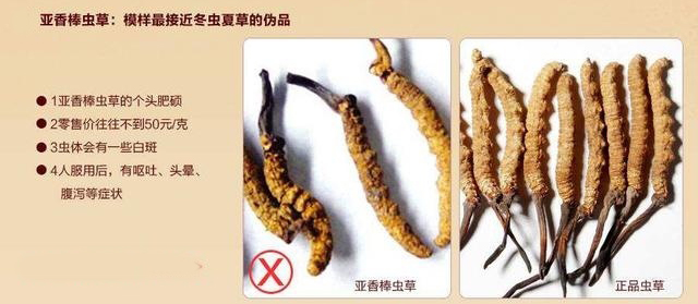 3、对比。一般假的冬虫夏草都会由亚香棒虫草仿冒。